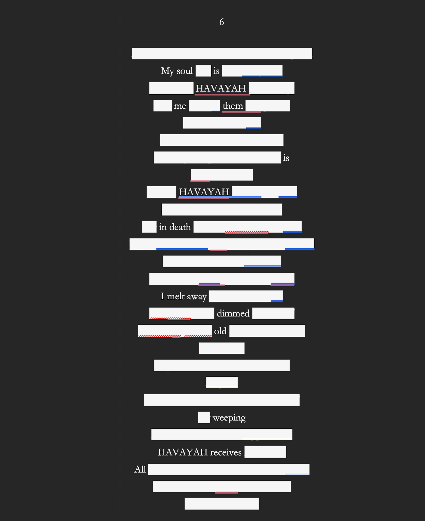 This is Psalm 6 from a series of forty-nine daily blackout Psalms for Counting the Omer. In homage to Dadaism, the avant-garde movement (1916–1924) where blackout poetry was central, I call this exercise juDADAism, a play on the Hebrew word DA/Know! (dalet-ayin). For more on this project and the use of the Hebrew HAVAYAH for YHVH/God, see my Substack essay “Counting the Omer.”
